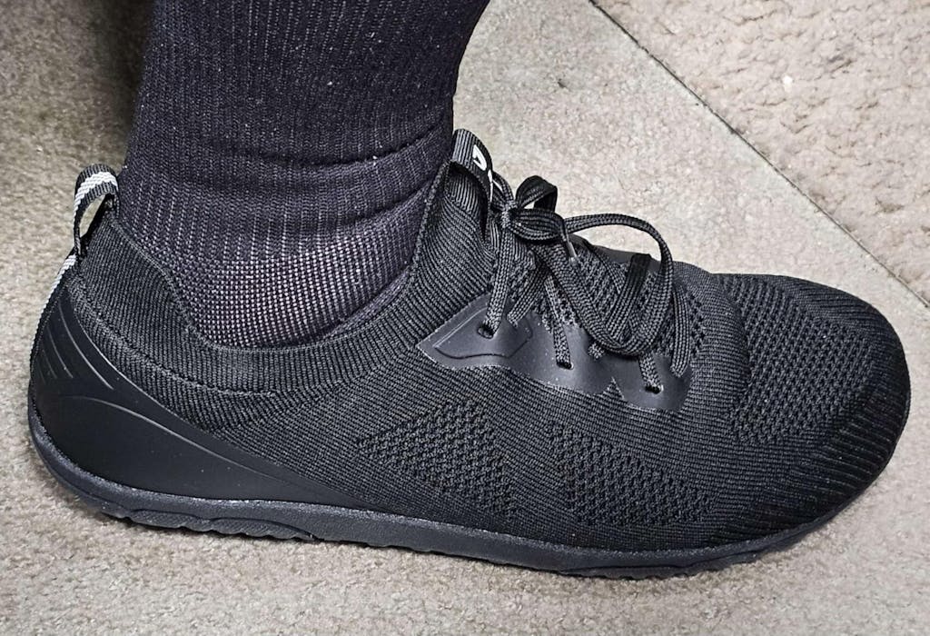 As advertised, these shoes have a 'zero drop' style, which basically means that the heel is not elevated - the sole is flat from heel to toe as opposed to most shoes of this type where the sole is thicker at the heel and then tapers down to the toes. It's an interesting feeling and you wouldn't think that such a small difference in sole angle would matter, but you can feel it for sure - I'm just not sure how it affected my walking or moving.