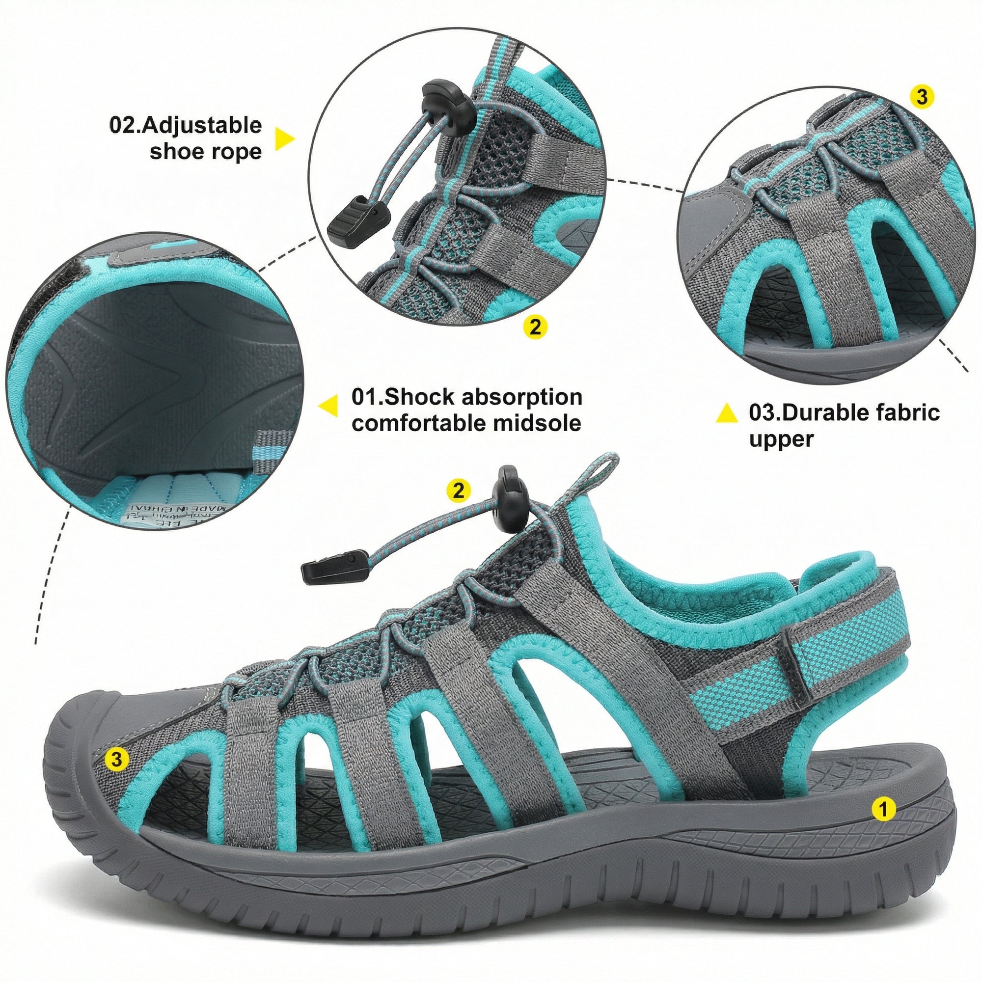 Breathable Fabric – made with webbing upper, light and breathable.
