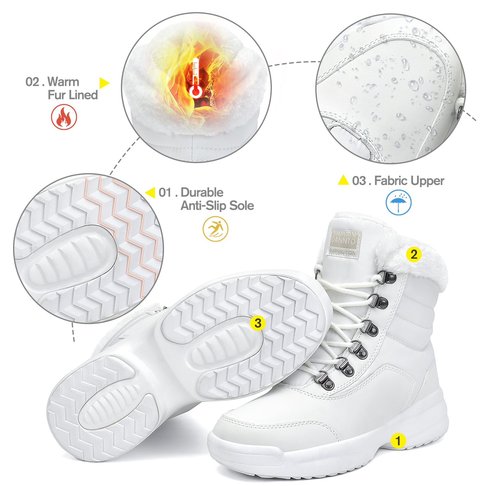 20 SEC WATCH :DANNTO winter boots are built for snowy adventures with a durable, water-resistant upper, cozy fur lining, secure fit, cushioned arch support, and a grippy rubber sole for stability on icy or rugged terrain.