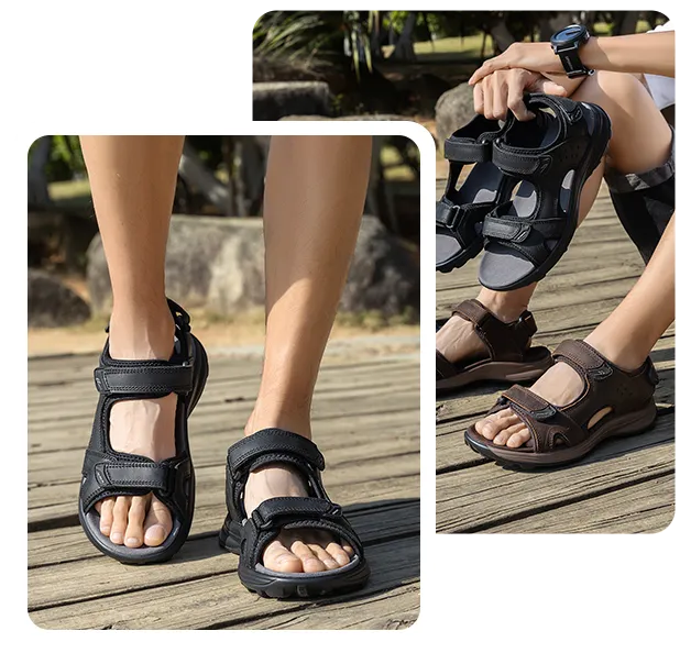 Statten Sie sich mit Sandalen aus, die speziell für Ihre Wandertouren entwickelt wurden. Mit robusten Gummisohlen für Halt und reduzierten Fußdruck sorgen sie für Komfort auf unwegsamen Wegen.
