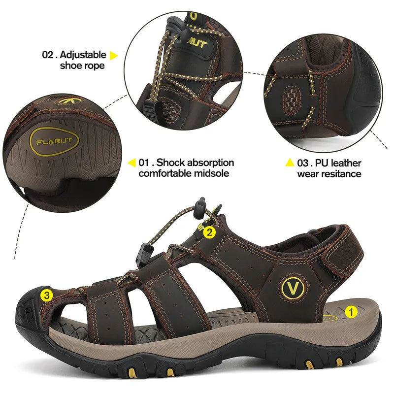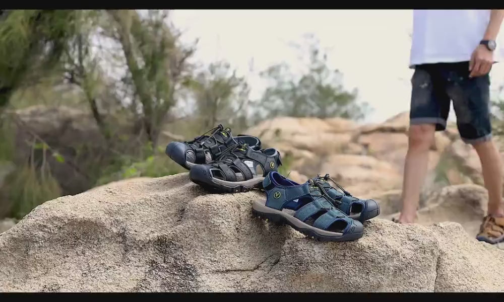 Statten Sie sich mit Sandalen aus, die speziell für Ihre Wandertouren entwickelt wurden. Mit robusten Gummisohlen für Halt und reduzierten Fußdruck sorgen sie für Komfort auf unwegsamen Wegen.