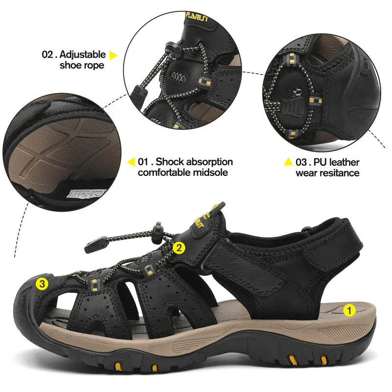 Statten Sie sich mit Sandalen aus, die speziell für Ihre Wandertouren entwickelt wurden. Mit robusten Gummisohlen für Halt und reduzierten Fußdruck sorgen sie für Komfort auf unwegsamen Wegen.